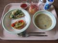 【献 立】 ライスボール 飲むヨーグルト さつまいものチャウダー風スープ カラフルパプリカのハンバ... -