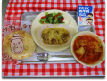 【献 立】 クロワッサン、牛乳、たっぷり野菜のチキンミネストローネ ブロッコリーとかぼちゃのポッ... -