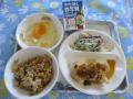 公開日:2025年08月04日ごはんさいたま市金平ナッツの混ぜご飯、千草焼き、じゃがいもと地元たまねぎのみそ汁、牛乳/令和7年6月 浦和中学校給食献立