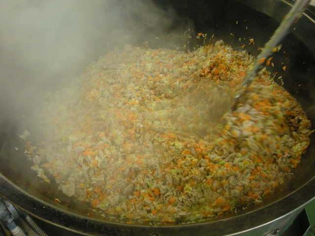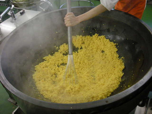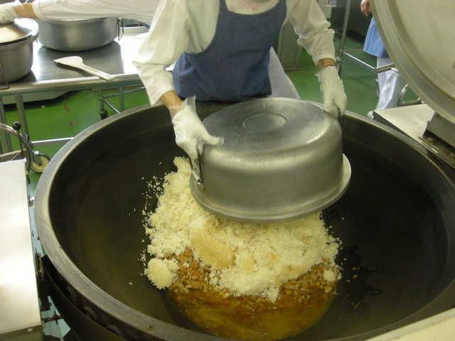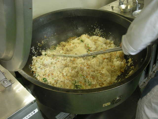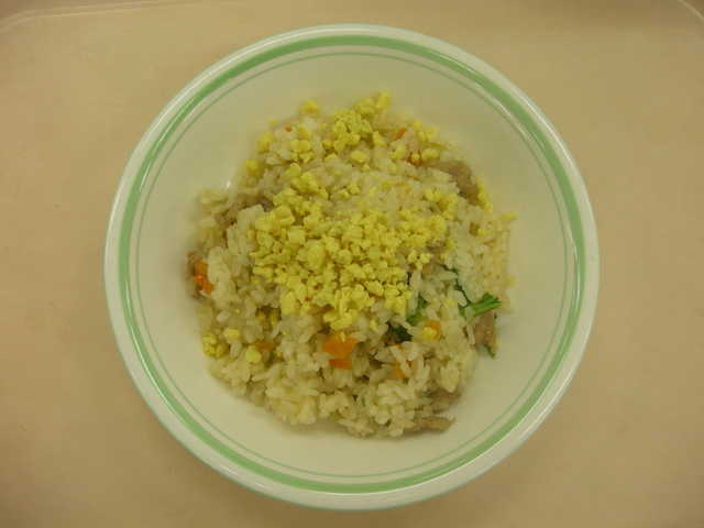 1 米は普通にとぎ、炊飯釜に入れ、通常の水の量を加える。 30分位水につけてから、塩、酒、ごま油を加えて炊く。 2 にんじんは色紙切り、にんにく、しょうが、長ねぎはみじん切りする。 チンゲン菜は2cm長さに切り、熱湯でさっとゆでてザルにあける。 豚肉は小さく切る。 3 中華鍋を熱し、植物油を入れてから、にんにく、しょうが、豚肉を炒める。さらに、長ねぎとにんじん、オイスターソースを加えてよく炒める。 4 砂糖、しょうゆ、オイスターソース、塩、白こしょうを加えて煮る。 さらに茹でたチンゲン菜を加えて具を仕上げる。 5 別の中華鍋かフライパンを熱し、溶き卵に塩を加えてから、炒り卵を作る。 6 き上がったご飯と具、炒り卵を混ぜ合わせる。 |