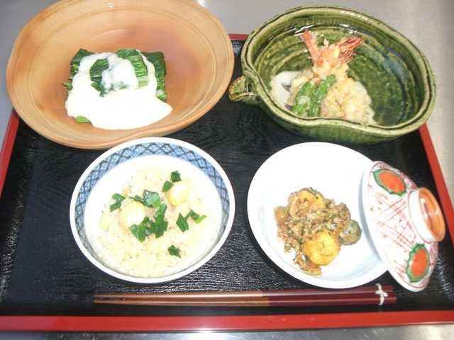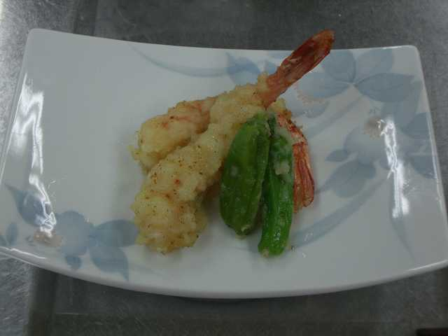 1 くわいの皮をむいて、おろし金ですりおろす。 すりおろした量と同量の水をボールに入れ、よく混ぜる。 さらに、くわいのすりおろした量と同量の小麦粉を加え、軽く混ぜて、天ぷら衣とする。 2 芝えびは皮をむき、背わたや足の部分も取り除く。身に切り込みを入れ、身を少し伸ばして形づくる。 ししとうは、竹串でいくつか穴をあけ、油がはねないようにする。 3 芝えびと、ししとうに打ち粉用の小麦粉を薄くまぶす。 4 160度くらいの油を準備し、3に天ぷら粉をつけて揚げる。 |