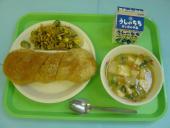 パン、牛乳、ラタトゥーユ、鶏肉のレモン風味、果物/平成23年9月 春岡小学校給食献立