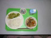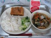 ピースごはん、牛乳、かつおの新たまねぎソースかけ、若竹煮/平成23年5月 春野小学校給食献立