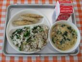 菜めし、牛乳、わかさぎのからあげ、むらくも汁/平成23年1月 文蔵小学校給食献立