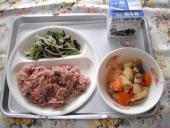 赤飯、牛乳、筑前煮、磯香和え/平成23年4月 道祖土小学校給食献立