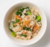 鮭と青菜の押し麦リゾット/食べつくスープ〜乾物や瓶詰の残りを使ってレンジで簡単!〜 おいしく減らそう食品ロス! 日曜日は食べつくスープ! ★日曜日、...